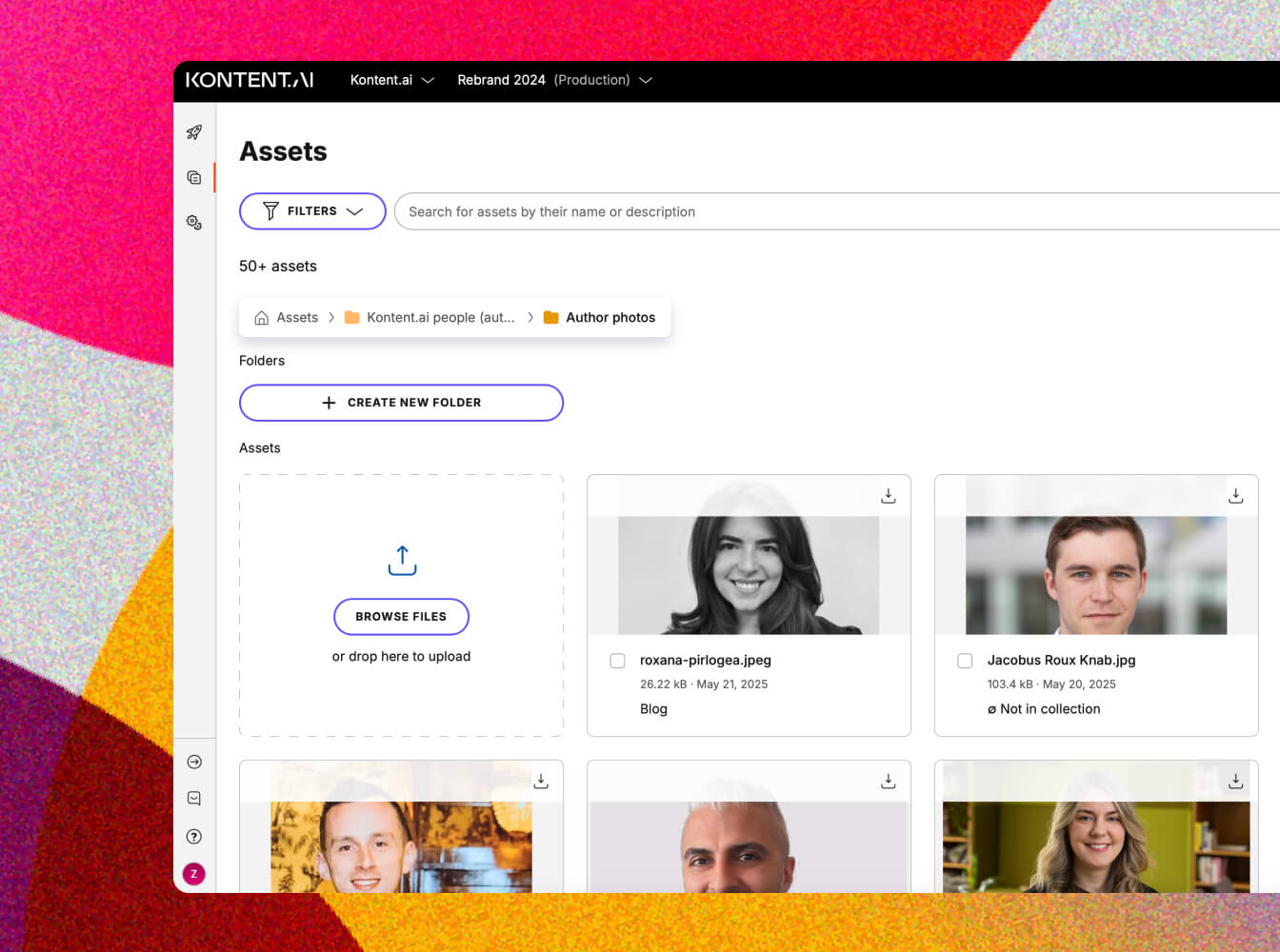 A subfolder with author photos in the Kontent.ai asset library