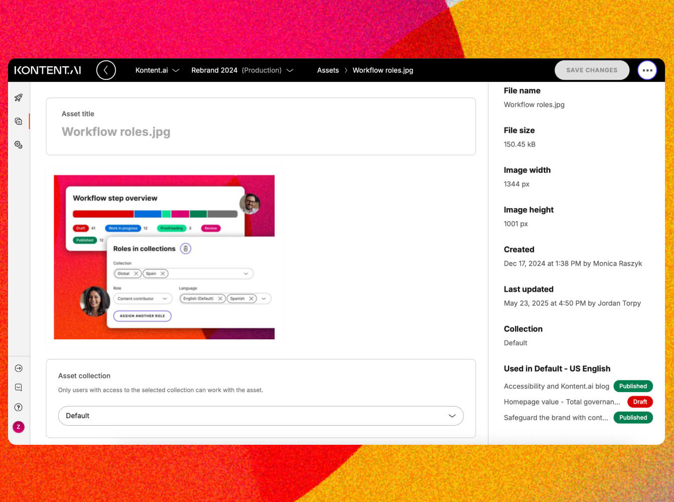 Assets can also be assigned to collections—and governed just like content items. This is especially useful when you want to restrict who can access or update images, documents, or videos or you’re working across multiple websites or content spaces.