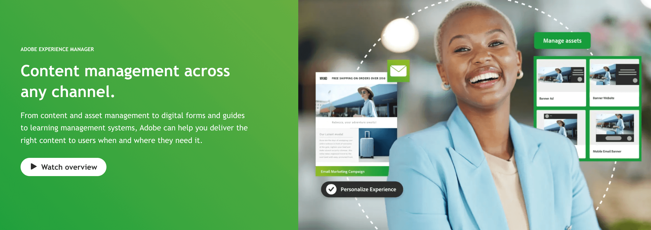 Adobe Experience Manager is part of Adobe’s integrated digital experience platform (DXP), bringing together content management, personalization, and digital asset management.