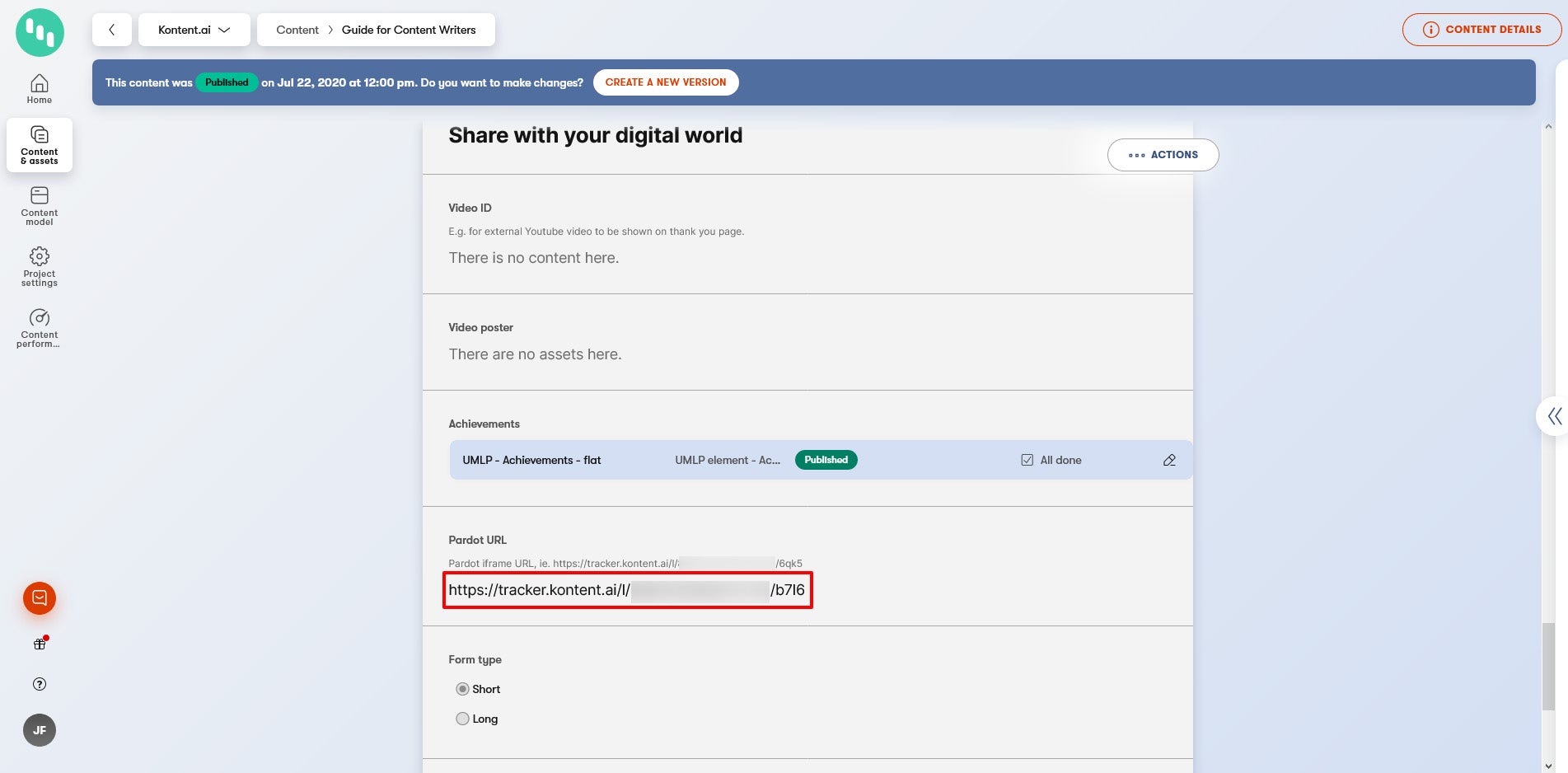 Moreover, your integration with a marketing automation tool doesn’t have to be limited to content-related areas only. The headless CMS can also help you with implementing the right form. We in the marketing team use Pardot, and, for our needs, we’ve created an integration between Kontent.ai and Pardot Forms.