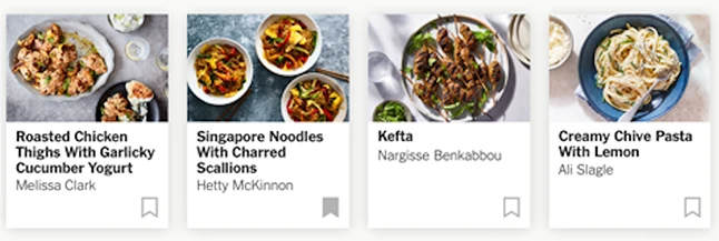 The New York Times’s popular cooking app illustrates the importance of aligning content types and design components. My family uses this app extensively. Like many apps, it relies on cards to present a range of content types.