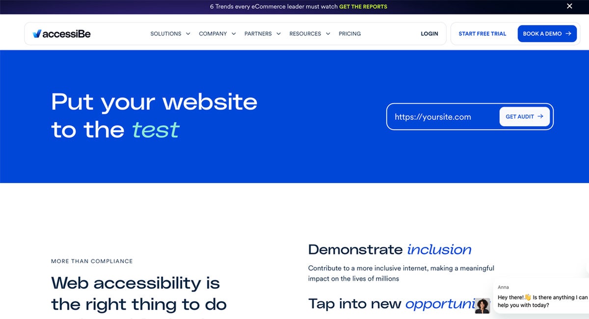 Tools like accessiBe allow you to quickly make your website more accessible by using AI-driven technology to detect issues.