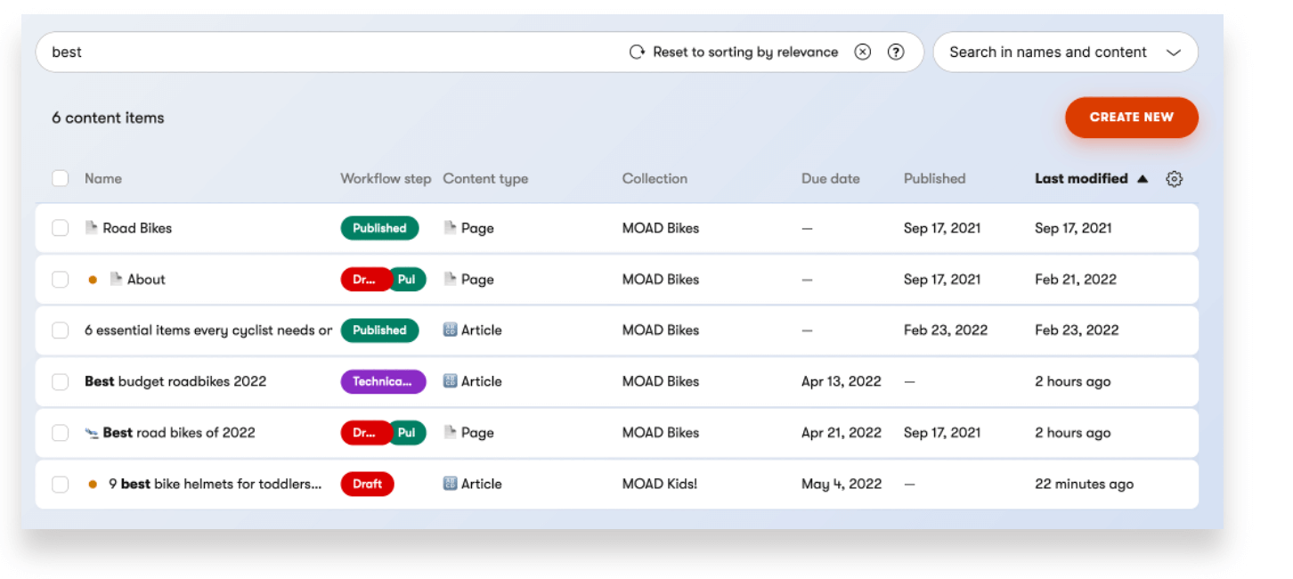 This is what search in Kontent.ai looked like in Q1 2022. Yours may look different.