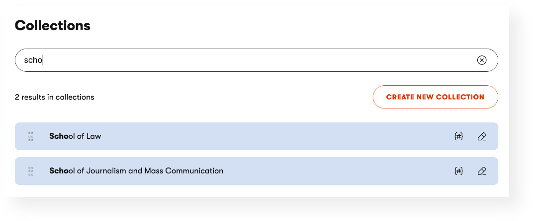 Finding the right Collection: Collections are an important way to draw boundaries around content and operations, while still keeping everything stored in one system. For organizations with a growing number of collections, the new search function is a great help. So is the more convenient location of the Create New Collection button. Right at the top, no scrolling necessary. It’s the little things, you know?