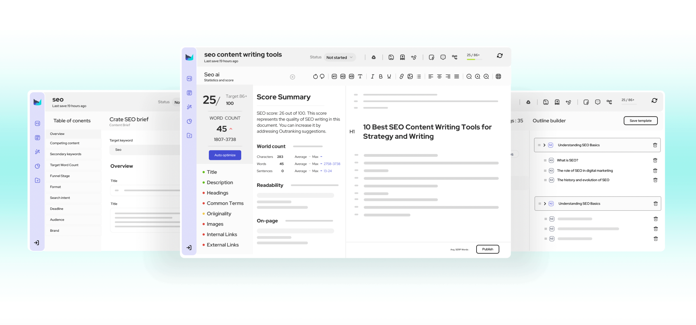 It gives practical suggestions like how many words to write, how often to use certain keywords, and how to structure your article with headings and subheadings. For content writers, this means you can focus on writing while letting the tool handle the technical SEO side.