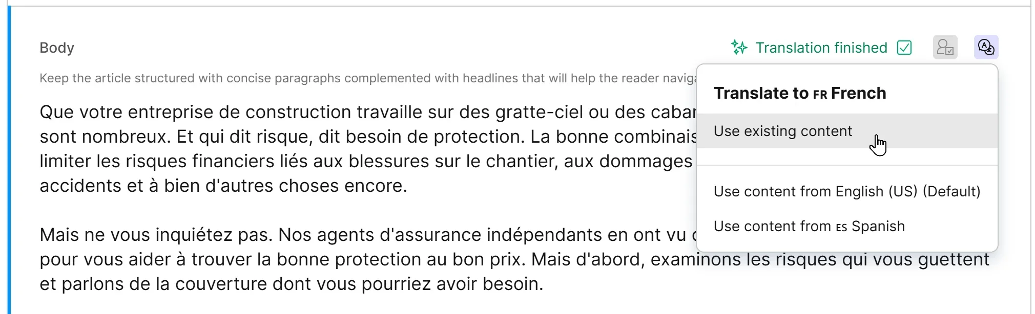 Translating content with Kontent.ai is effortless—just a few clicks, and you’re done.