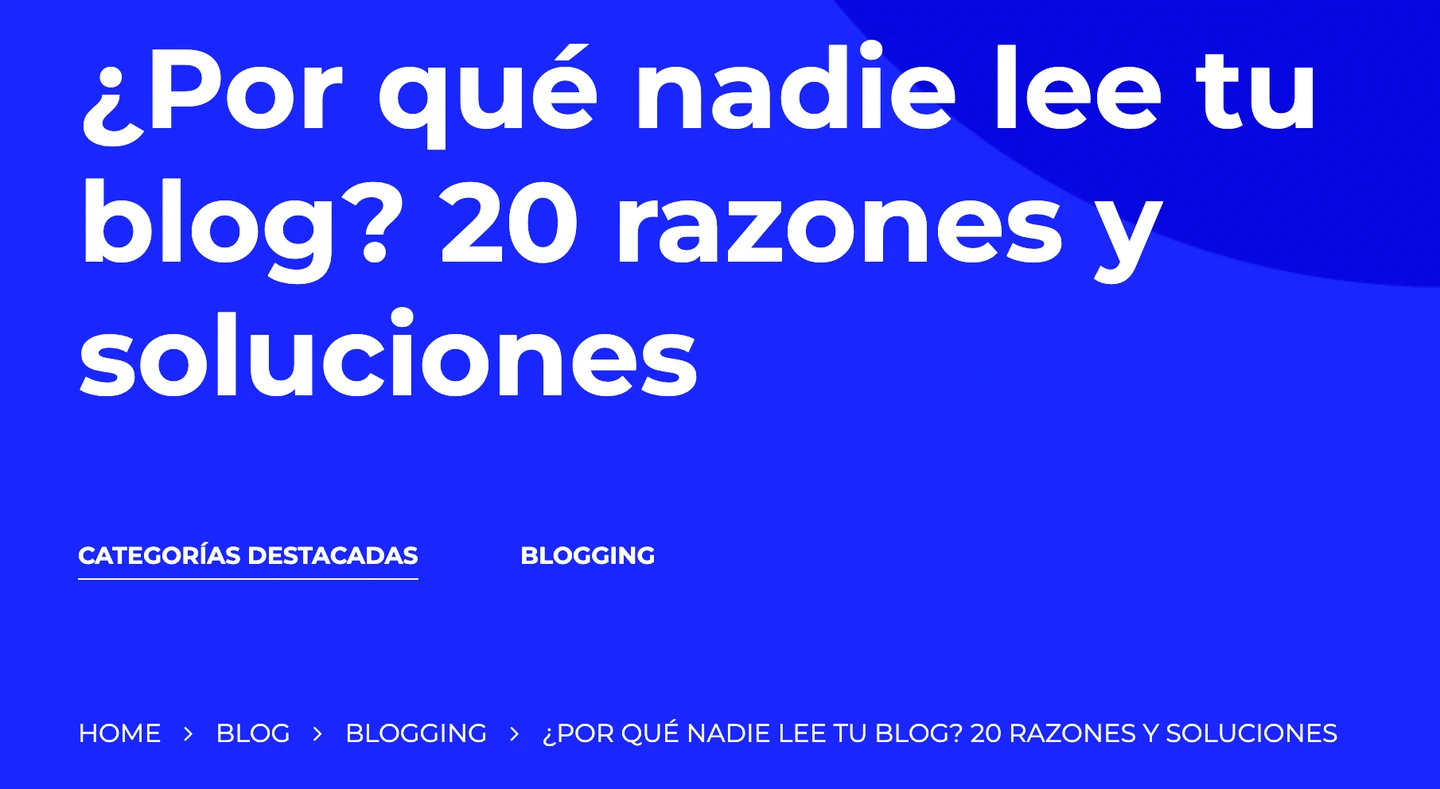 Take the Spanish blog below as an example: “¿Por qué nadie lee tu blog? 20 razones y soluciones.” (Translation: “Why does no one read your blog? 20 reasons and solutions.”). That’s a strong, practical title that hits a real problem content creators can face. If you get inspired by the idea, adapt it for your own audience and add your perspective, you get a strong new piece.