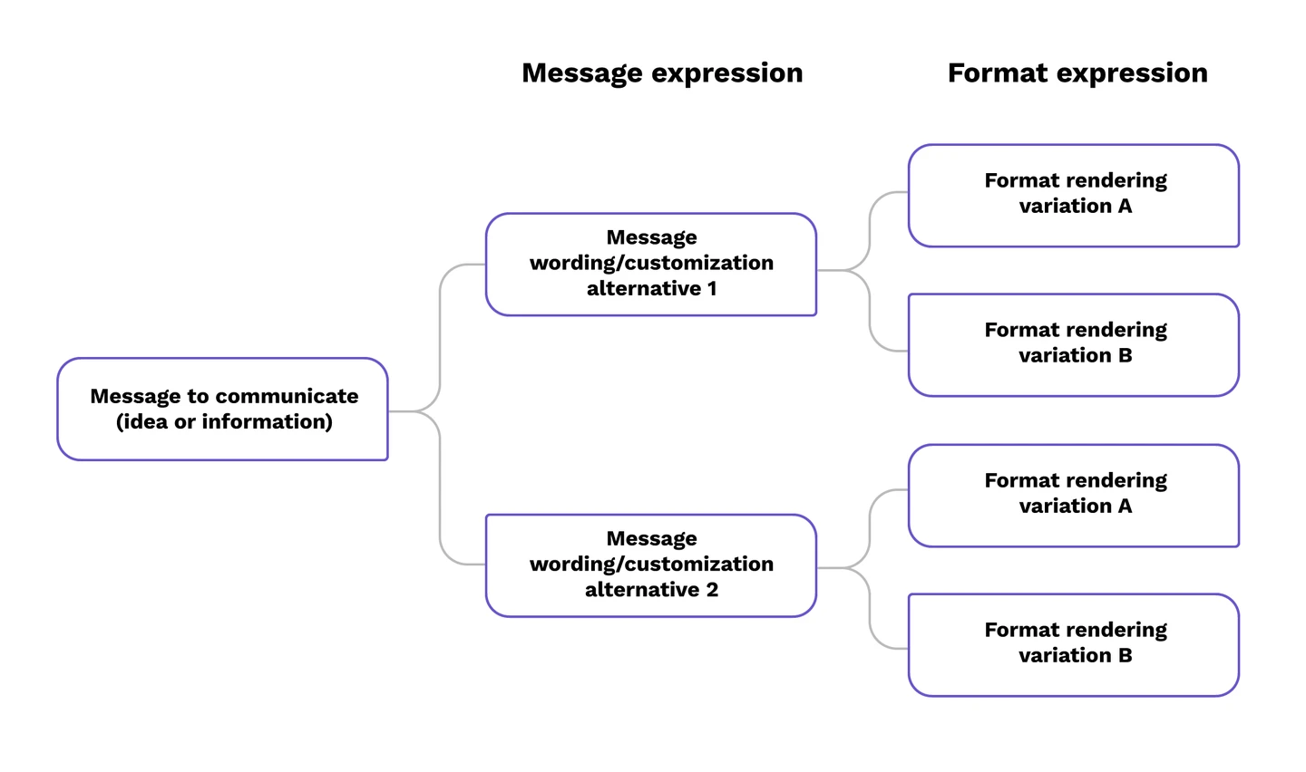 In a manual content development process, offering variations is time-intensive and expensive. Manually creating information customization is tedious and prone to errors. Manually developing wording variations requires skills that are frequently in short supply. Manual processes can be prohibitively expensive, and as a result, only a small subset of content is tailored to audience needs.