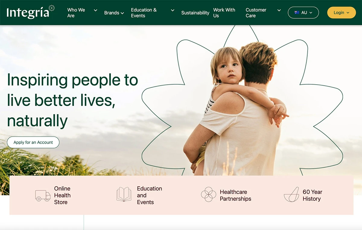 Integria is the parent company and distributor of global leading nutritional and complementary healthcare brands, headquartered in Australia. They offer a range of natural products both as wholesalers and through their own direct to consumer channels where they also connect healthcare practitioners with patients. They have their own portfolio of retail and practitioner-only brands, with each brand having its own website.