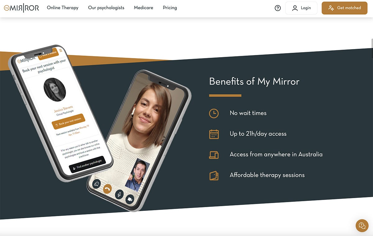 My Mirror launched as an online mental telehealth service, offering stepped-care psychology services to all Australians. The platform sought to eliminate most geographical, financial, and time-related accessibility barriers to seeking therapy by providing Australians with 21-hour-a-day access to registered online psychologists from any location, using their own devices.
