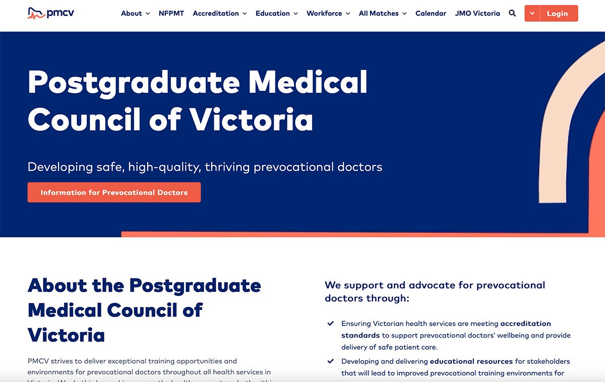 The PMCV website that helps support the welfare and career development of doctors and nurses in Victoria, Australia