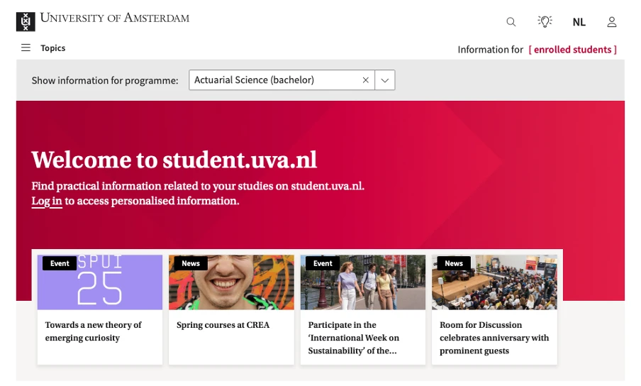 To make it easier for students to access all critical information easily, UvA created a unified, personalized student portal, student.uva.nl. This portal offers one single place for students to find all the information they need.
