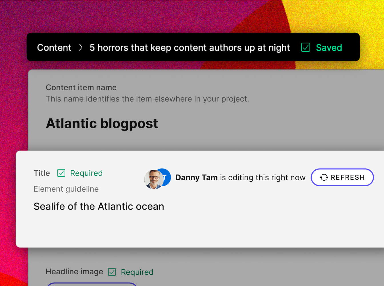 When multiple contributors work in the same content item at the same time, everything goes much more smoothly. Just like with other collaborative tools you are already used to, see who else has the same content item open that you do.