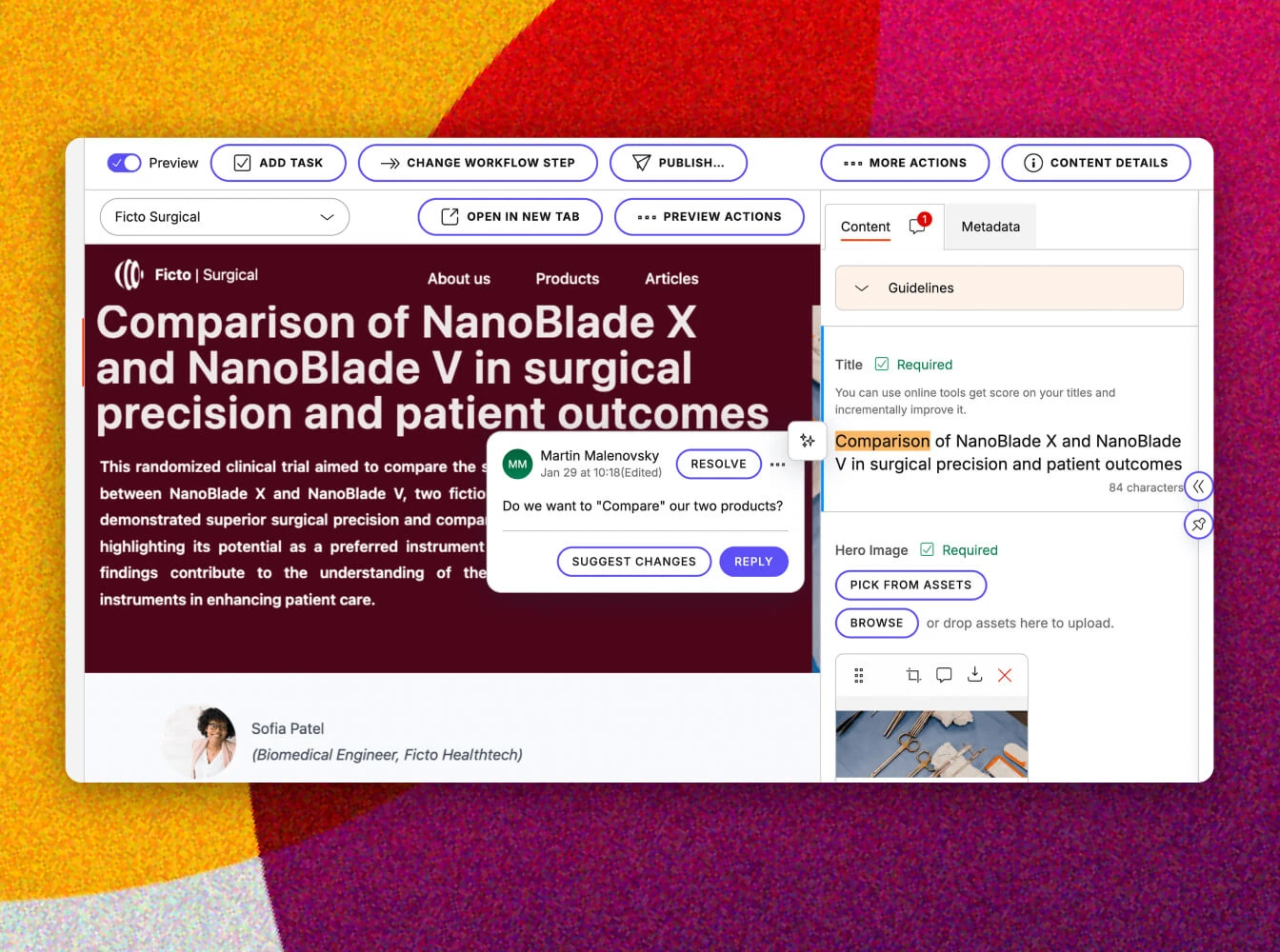Bring the whole team together under one platform. Assign tasks, make suggestions, and simplify review processes for sensitive content. Keep accuracy high, save time, and ensure content quality with one centralized workspace.