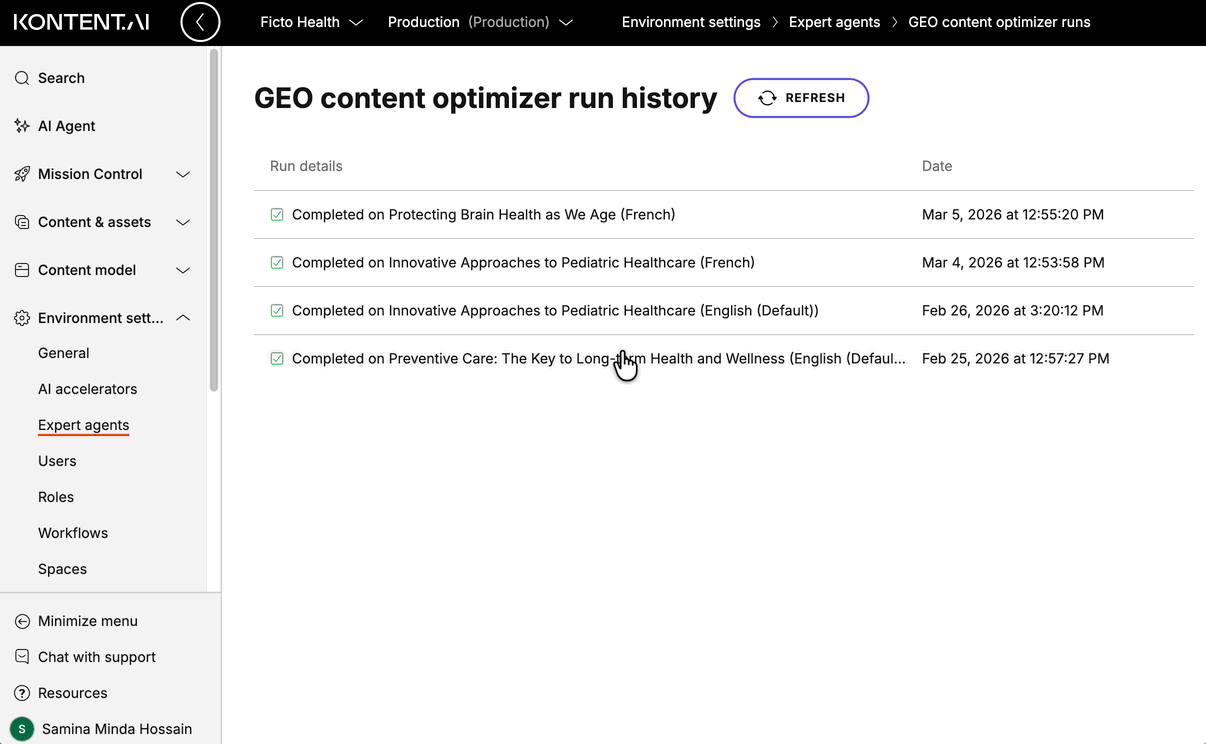 Expert agents handle the repetitive, rules-based parts of content production so your team can focus on work that requires human judgment. Set up as many as you need – multiple agents can run simultaneously, each working on different content independently. Here are some things you can automate:- Automatically translate content into your target languages when a new language variant is created.