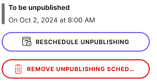 Content & assets, open a published content item you want to schedule for unpublishing.