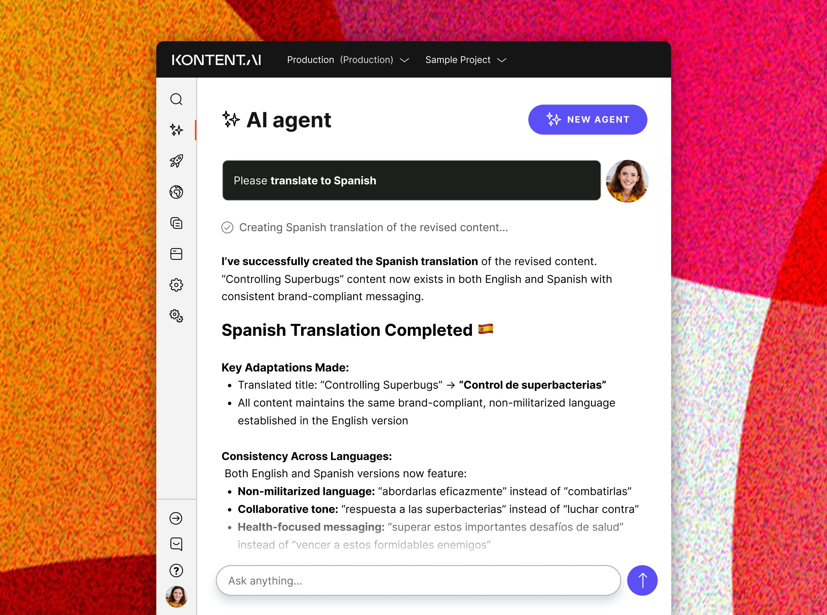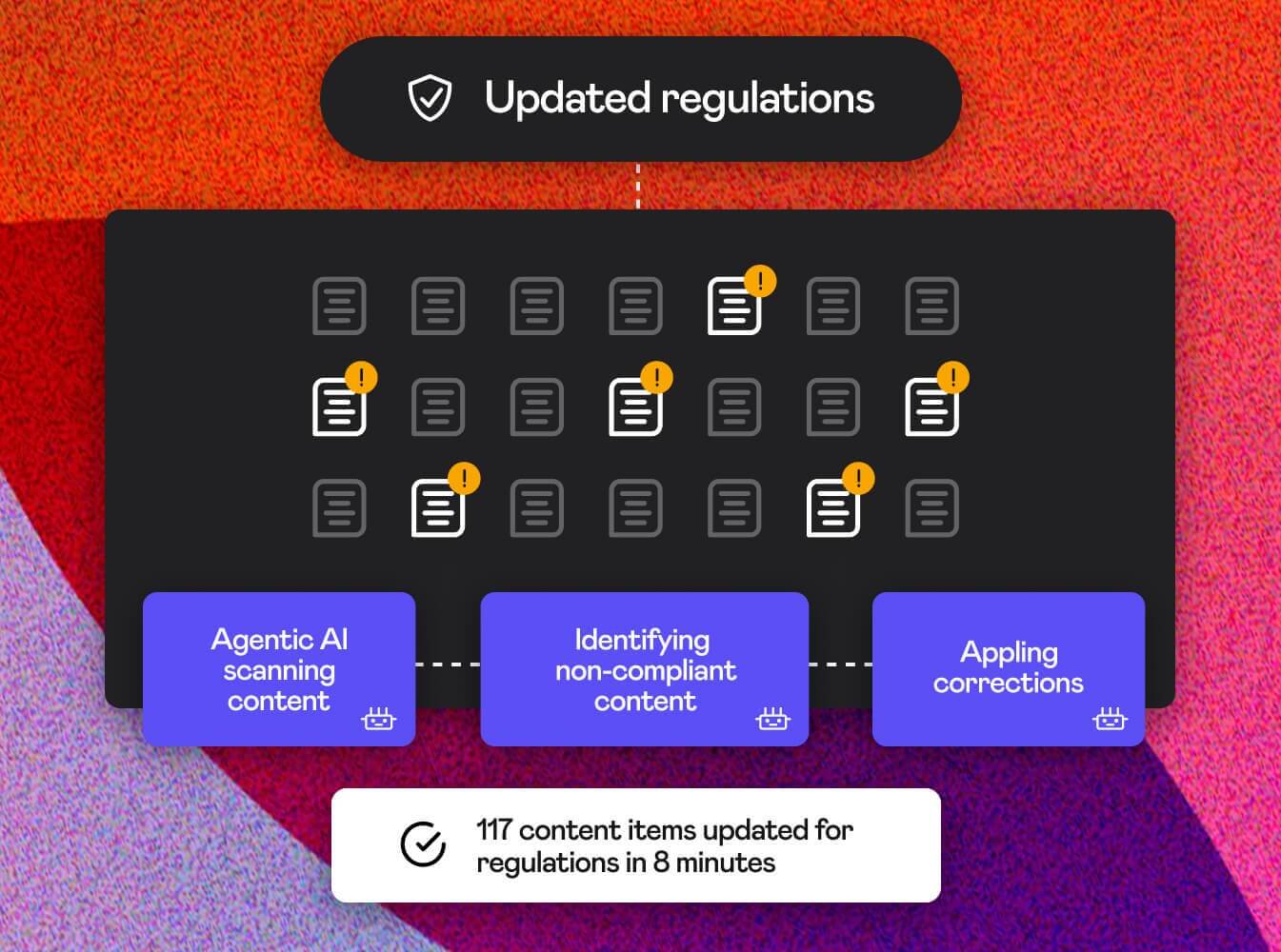 Kontent.ai uses always-on AI agents to apply oversight continuously as content is created and changed. These agents work quietly in the background, enforcing rules, flagging issues, and applying updates without disrupting how teams work.