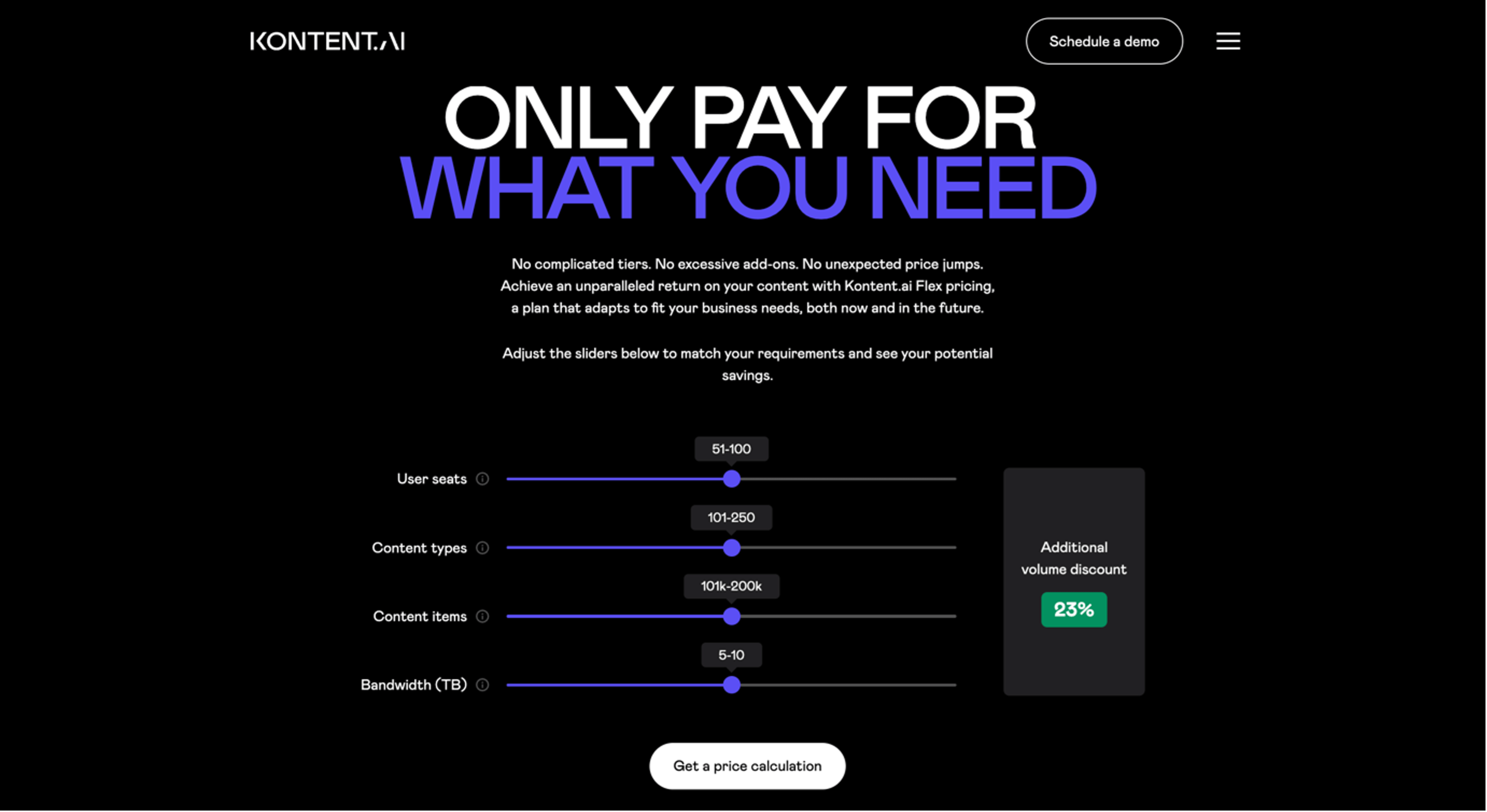The original (control) version used an interactive slider to give a rough estimate of the volume discount.