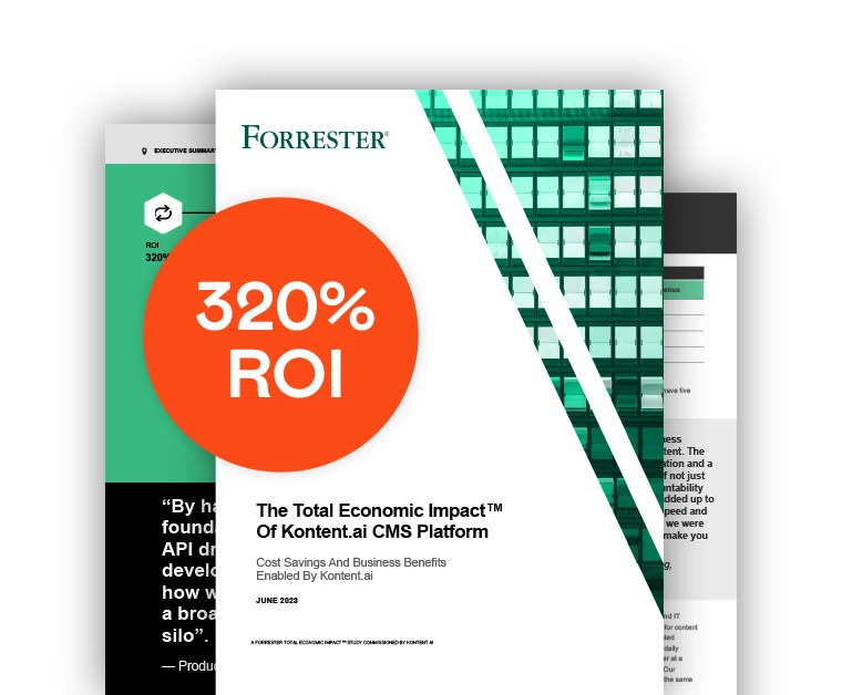 Learn how Kontent.ai generated a 320% ROI over three years and helps its customers speed up time-to-market in a commissioned study conducted by Forrester Consulting.