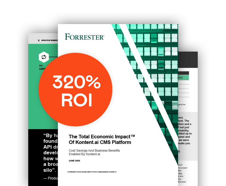 Learn how Kontent.ai generated a 320% ROI over three years and helps its customers speed up time-to-market in a commissioned study conducted by Forrester Consulting.