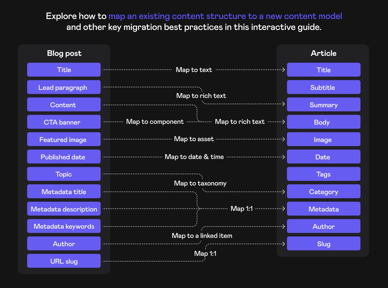 This interactive guide will make your move to Kontent.ai smoother. It’s the perfect source for you if you’re looking for better ways to manage your content and address your complex content needs.