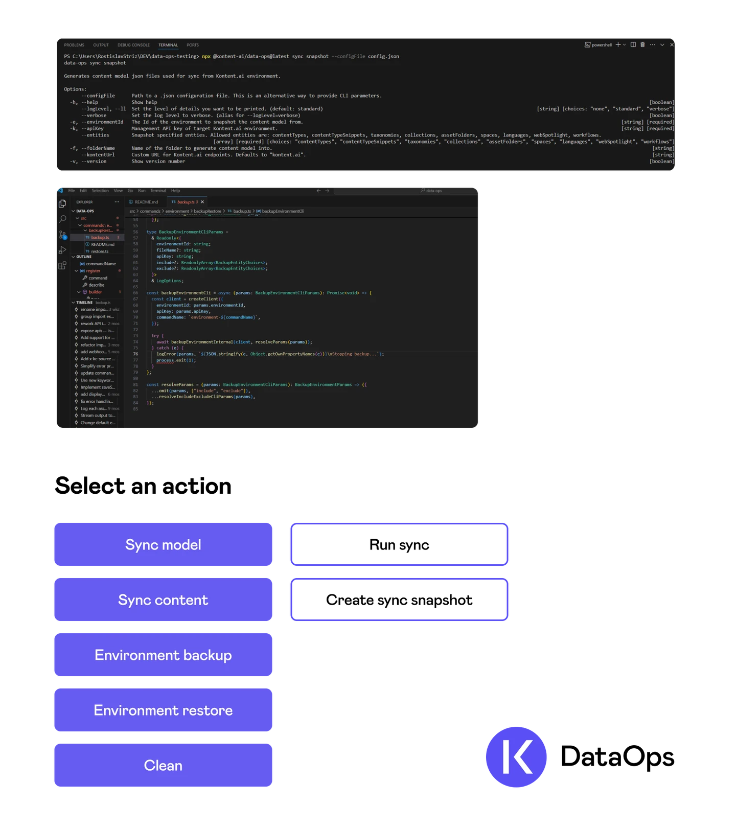 The data-ops tool gives you a complete toolkit for working with data in your Kontent.ai environments. Use the tool from the command line or directly from your code to do tasks like: