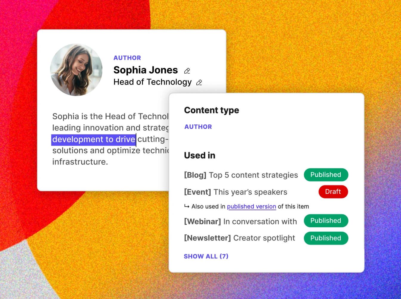 Deliver clean, structured content through an API to ensure it integrates with any presentation layer, with no impact on other components or services. Meet customers on new and modern channels without straining your development resources.
