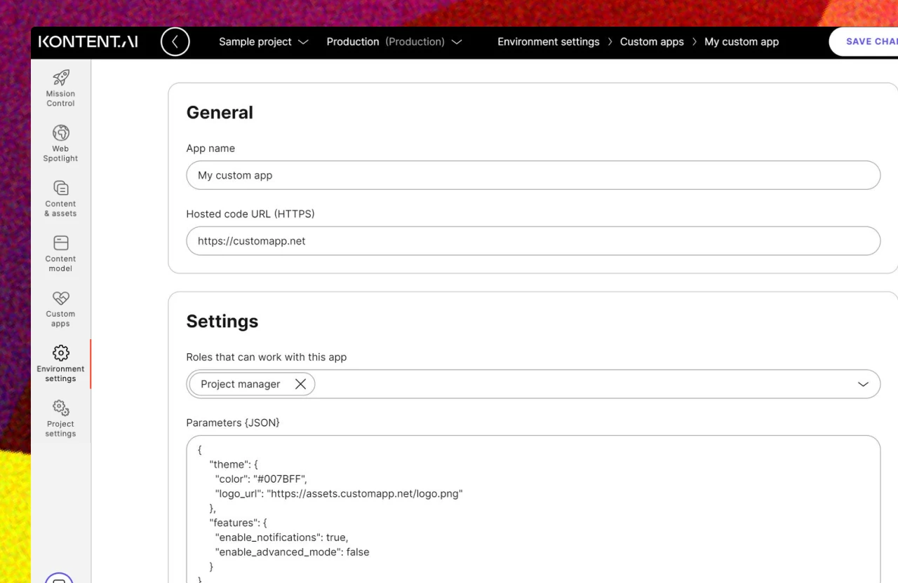 Level up your content operations by embedding full-screen tools and dashboards directly in Kontent.ai. Custom apps let you integrate external services, create specialized content views, and build custom workflows – all seamlessly within switching contexts. From SEO analytics to translation management, work with everything you need without leaving the platform.
